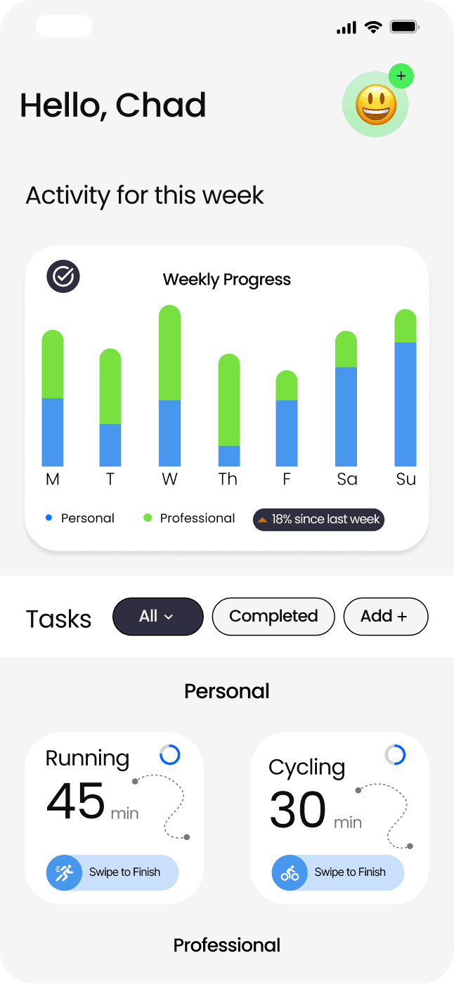 A cohezive set of screens designed to keep users focused, grounded, and motivated within a single, distraction f-free system